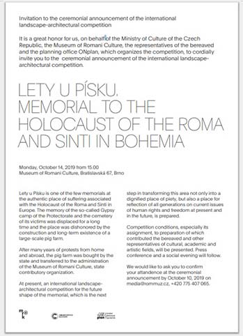 InvitationMemorial Lety2019-10-30T12:49:32+01:00 INVITATION Invitation to the ceremonial announcement of the international landscape-architectural competition INVITATIONMonday, October 14, 2019PHOTOS FROM THE ANNOUNCEMENT OF THE COMPETITION